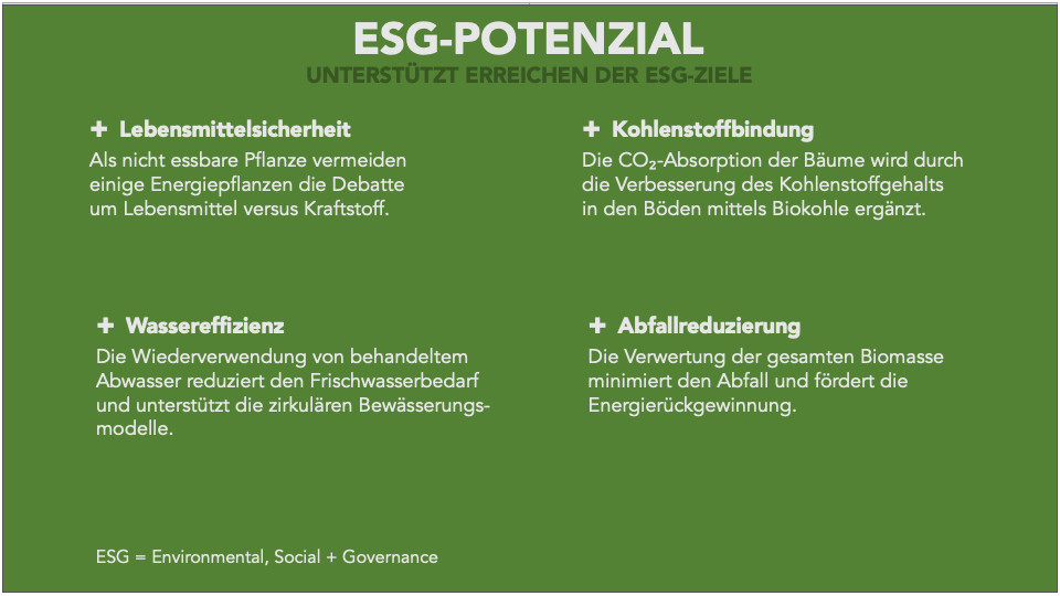 Nachhaltige Kraftstoffe sind einer der wichtigsten Hebel, die CO₂-Emissionen des Sektors signifikant zu reduzieren und den Weg zum ultimativen Ziel der Netto-Null-Emission zu beschleunigen. Innovative Agrarkonzepte mit einem ganzheitlichen Nachhaltigkeitsmodell für Biokraftstoffe erzielen multiple Wertschöpfung in den Bereichen Energie, Kohlenstoffbindung und Ernährung.