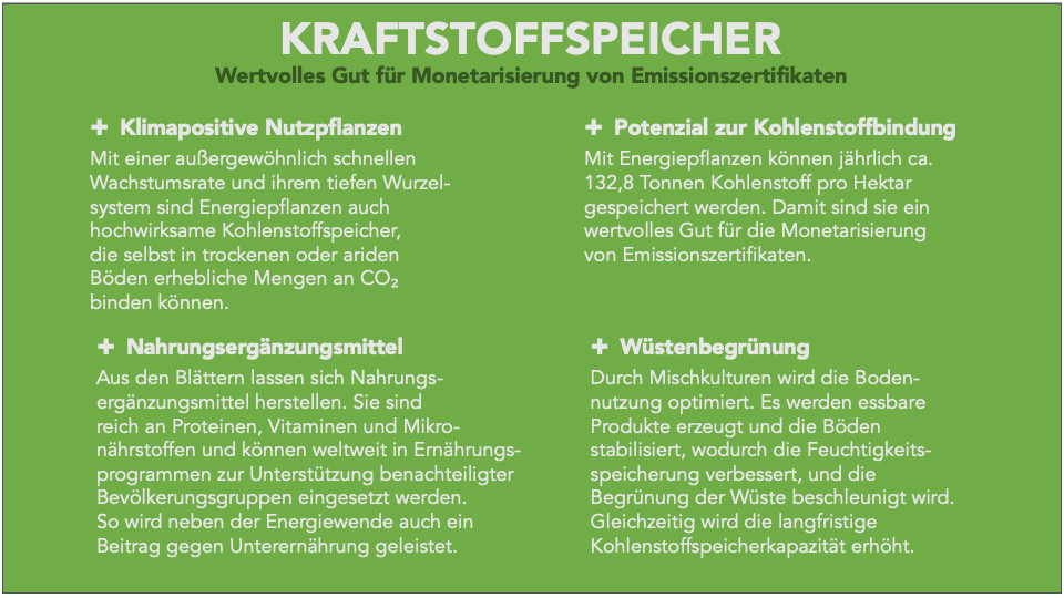 Multiple Wertschöpfung für den Anbau von Biokraftstoffen: Energie + Kohlenstoffbindung + Ernährung